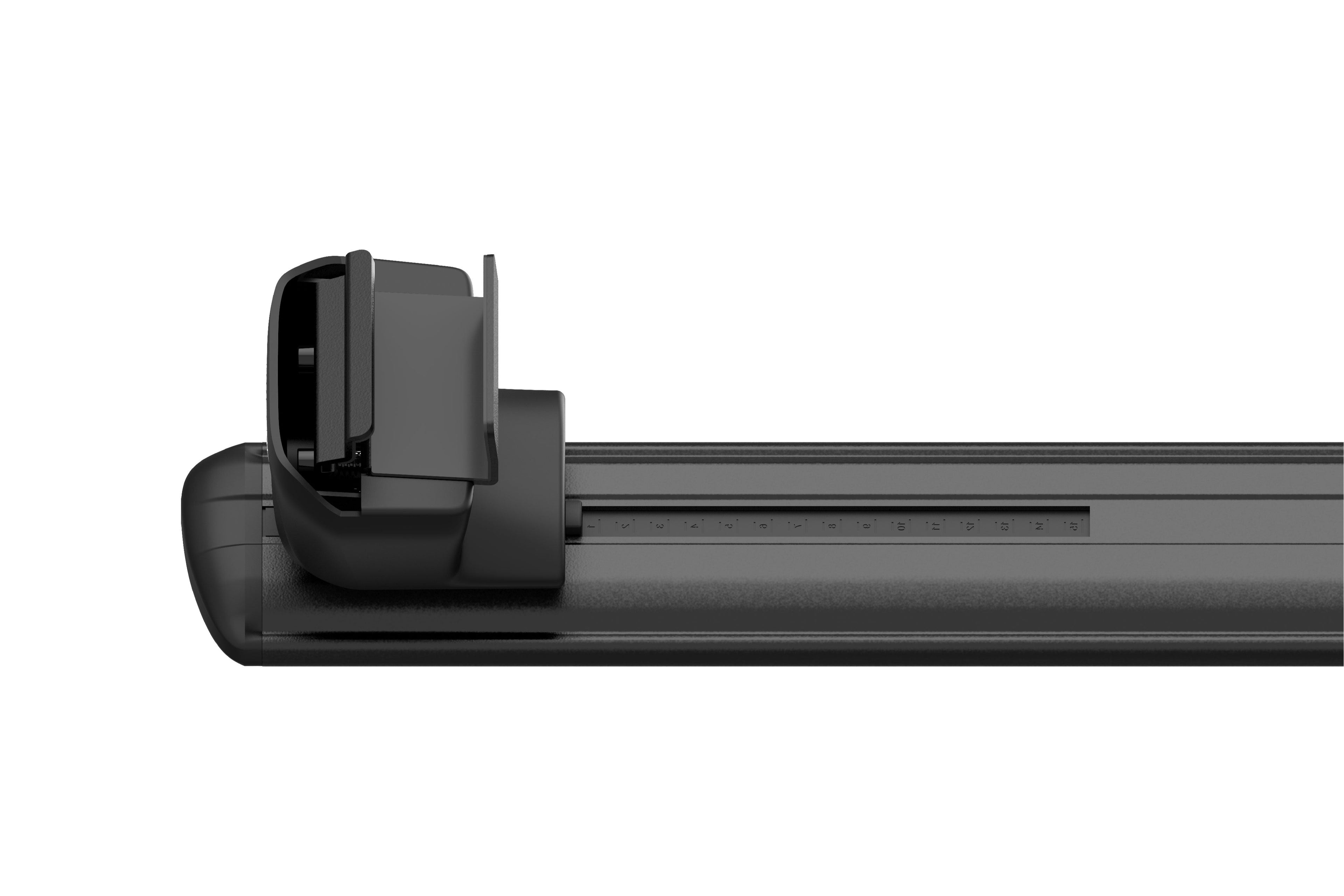 The base of cross bar can be adjusted by sliding to accommodate the side rails spacing of different vehiclesThe track groove is equipped with a graduated slidingcover to assist the user with symmetrical installation.